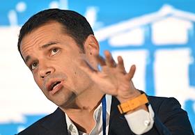XXI Международный банковский форум в конференц-центре отеля "Pullman Сочи Центр". Круглый стол "Игры разума: меры поддержки для развития отрасли". Управляющий директор АО ДОМ.РФ Алексей Ниденс во время заседания.