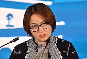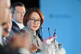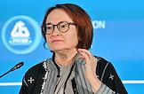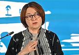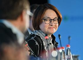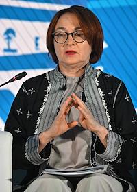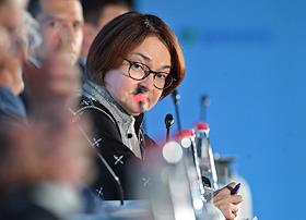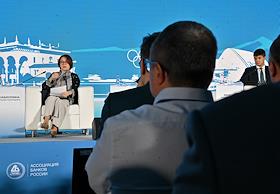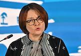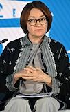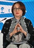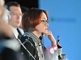 XXI Международный банковский форум в конференц-центре отеля "Pullman Сочи Центр". Сессия "Российская экономика в меняющемся мире". Председатель Центрального Банка России Эльвира Набиуллина во время сессии.