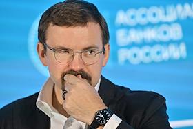 XXI Международный банковский форум в конференц-центре отеля "Pullman Сочи Центр". Круглый стол "Игры разума: меры поддержки для развития отрасли". Заместитель председателя правления АО "Альфа-Банк" Павел Высоцкий во время заседания.