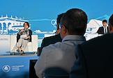 XXI Международный банковский форум в конференц-центре отеля "Pullman Сочи Центр". Круглый стол "Банковское регулирование: осторожное движение". Заместитель председателя Центрального Банка России Ольга Полякова во время заседания.