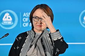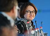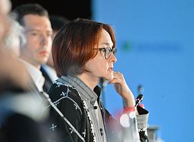 XXI Международный банковский форум в конференц-центре отеля "Pullman Сочи Центр". Сессия "Российская экономика в меняющемся мире". Председатель Центрального Банка России Эльвира Набиуллина (справа) во время сессии.