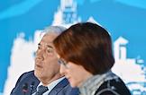 XXI Международный банковский форум в конференц-центре отеля "Pullman Сочи Центр". Председатель комитета Государственной думы России по финансовому рынку Анатолий Аксаков (слева) и заместитель председателя Центрального Банка России Ольга Полякова (справа) на форуме.