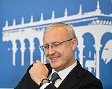 XXI Международный банковский форум в конференц-центре отеля "Pullman Сочи Центр". Председатель комитета Государственной думы России по финансовому рынку Анатолий Аксаков (справа) на форуме.