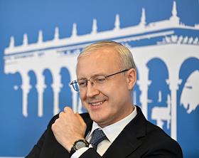 XXI Международный банковский форум в конференц-центре отеля "Pullman Сочи Центр". Сессия "Российская экономика в меняющемся мире". Главный управляющий директор "Альфа-Банка" Владимир Верхошинский во время сессии.