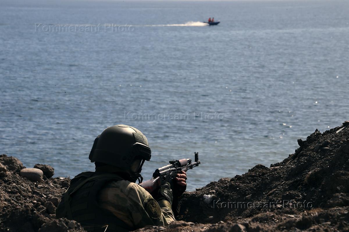 Военные учения по борьбе с диверсионными группами. Тренировка по патрулированию прибрежной территории.