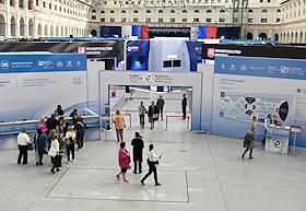 VII международный форум "Российская энергетическая неделя" в ЦВЗ "Манеж". Выставка в рамках форума. Посетители на выставке.