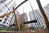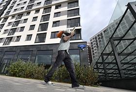 Жилой комплекс "Заневский" компании GloraX на Заневском проспекте 65. Надпись на стекле "Аренда помещения".
