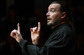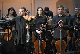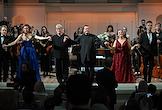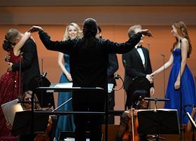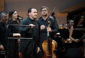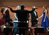 Концерт "Так поступают все женщины" на музыку композитора композитора Вольфганга Амадея Моцарта в исполнении оркестра La voce strumentale и хора Нижегородского государственного академического театра оперы и балета имени А. С. Пушкина в концертном зале имени П.И. Чайковского. Руководитель ансамбля La Voce Strumentale, дирижер Дмитрий Синьковский (в центре) во время концерта.