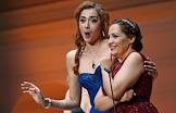 Концерт "Так поступают все женщины" на музыку композитора композитора Вольфганга Амадея Моцарта в исполнении оркестра La voce strumentale и хора Нижегородского государственного академического театра оперы и балета имени А. С. Пушкина в концертном зале имени П.И. Чайковского. Оперные певицы Яна Дьякова (слева) и Надежда Павлова во время концерта.
