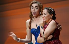 Концерт "Так поступают все женщины" на музыку композитора композитора Вольфганга Амадея Моцарта в исполнении оркестра La voce strumentale и хора Нижегородского государственного академического театра оперы и балета имени А. С. Пушкина в концертном зале имени П.И. Чайковского. Оперные певицы Яна Дьякова (слева) и Надежда Павлова во время концерта.