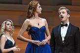 Концерт "Так поступают все женщины" на музыку композитора композитора Вольфганга Амадея Моцарта в исполнении оркестра La voce strumentale и хора Нижегородского государственного академического театра оперы и балета имени А. С. Пушкина в концертном зале имени П.И. Чайковского. Слева направо: оперные певцы Елена Сизова, Яна Дьякова и Константин Сучков во время концерта.