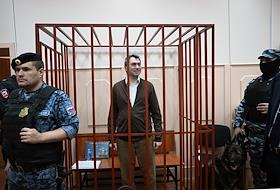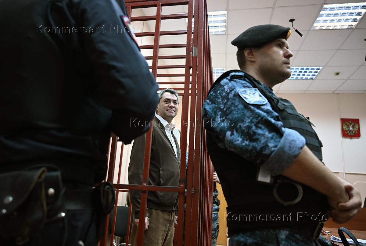 Судебное заседание по делу сопредседателя движения "Голос" (включено Минюстом России в реестр иностранных агентов) Григорию Мельконьянцу, обвиняемого по делу об организации работы нежелательной неправительственной организации, в Басманном районном суде. Сопредседатель движения в защиту прав избирателей "Голос" Григорий Мельконьянц во время заседания суда.