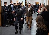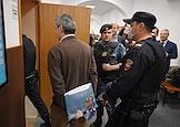 Судебное заседание по делу сопредседателя движения "Голос" (включено Минюстом России в реестр иностранных агентов) Григорию Мельконьянцу, обвиняемого по делу об организации работы нежелательной неправительственной организации, в Басманном районном суде. Сопредседатель движения в защиту прав избирателей "Голос" Григорий Мельконьянц (в центре) перед началом заседания суда.