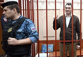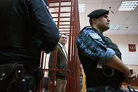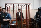 Судебное заседание по делу сопредседателя движения "Голос" (включено Минюстом России в реестр иностранных агентов) Григорию Мельконьянцу, обвиняемого по делу об организации работы нежелательной неправительственной организации, в Басманном районном суде. Сопредседатель движения в защиту прав избирателей "Голос" Григорий Мельконьянц (справа) во время заседания суда.