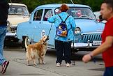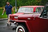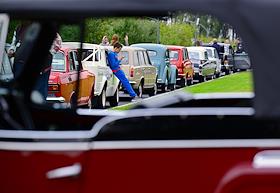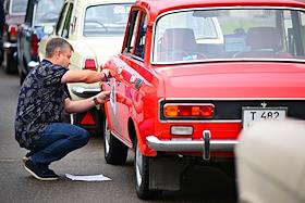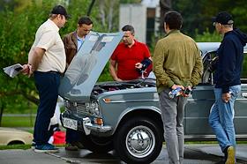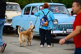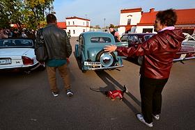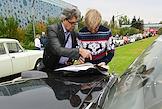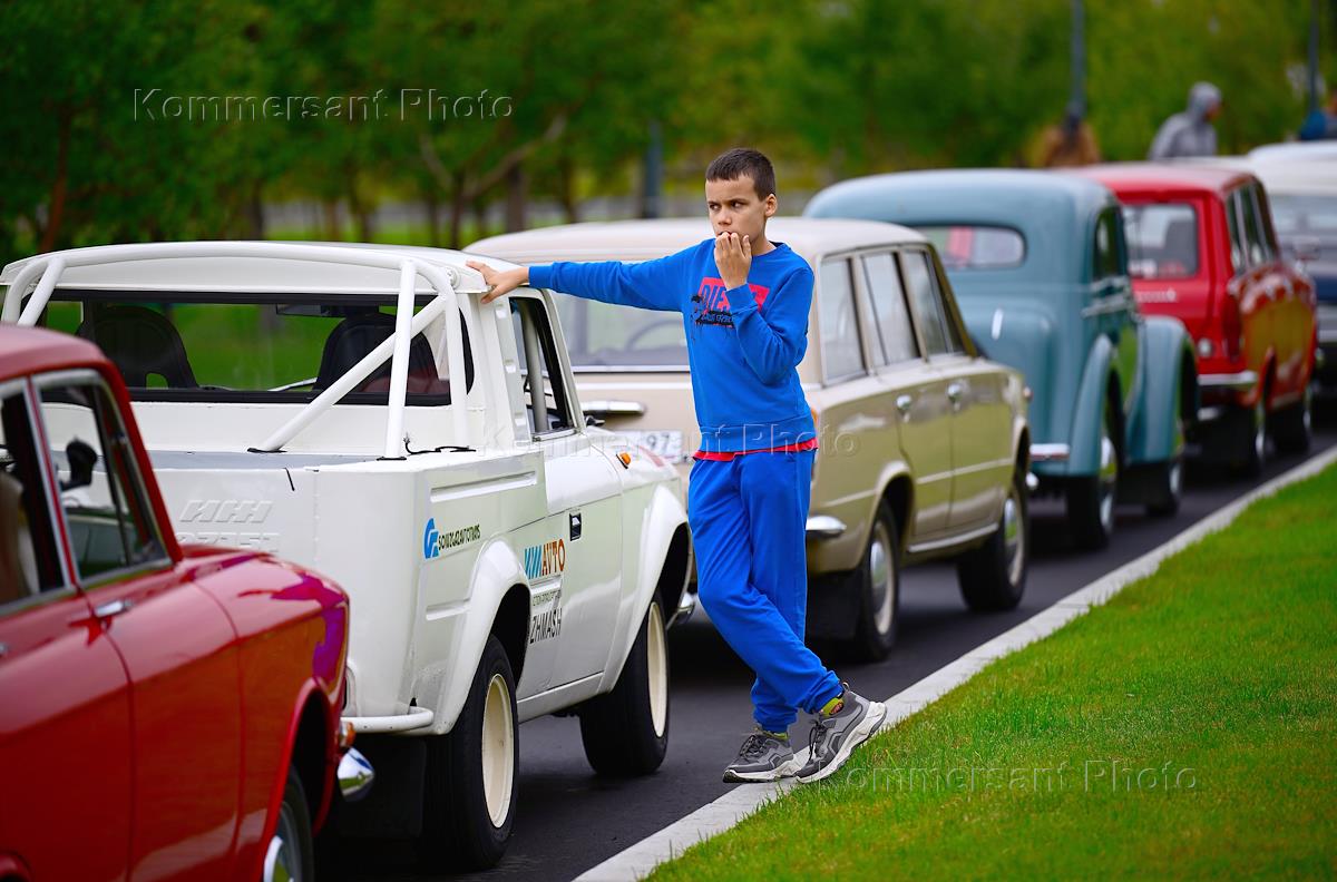 III этап Кубка Москвы по историческому ралли прошел на ВДНХ от вертолетной площадки до Музея Гаража особого назначения. Участники перед стартом.