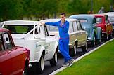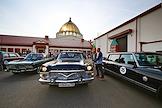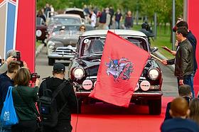 III этап Кубка Москвы по историческому ралли прошел на ВДНХ от вертолетной площадки до Музея Гаража особого назначения. Автомобили на старте.