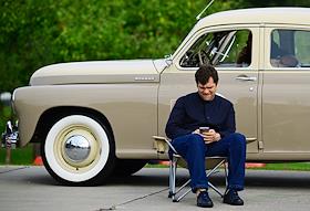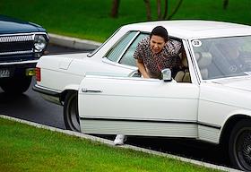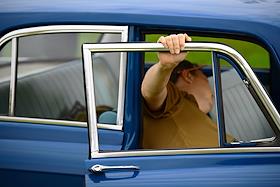 III этап Кубка Москвы по историческому ралли прошел на ВДНХ от вертолетной площадки до Музея Гаража особого назначения. Жанровая фотография. Зеркало заднего вида.