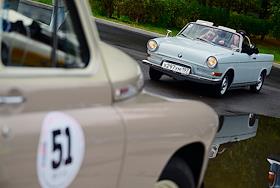 III этап Кубка Москвы по историческому ралли прошел на ВДНХ от вертолетной площадки до Музея Гаража особого назначения. Автомобили во время ралли.