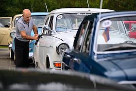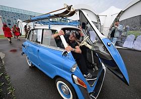 III этап Кубка Москвы по историческому ралли прошел на ВДНХ от вертолетной площадки до Музея Гаража особого назначения. Автомобиль BMW Isetta 600 перед началом ралли.