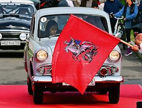 III этап Кубка Москвы по историческому ралли прошел на ВДНХ от вертолетной площадки до Музея Гаража особого назначения. Автомобиль "Москвич-412" перед началом ралли.