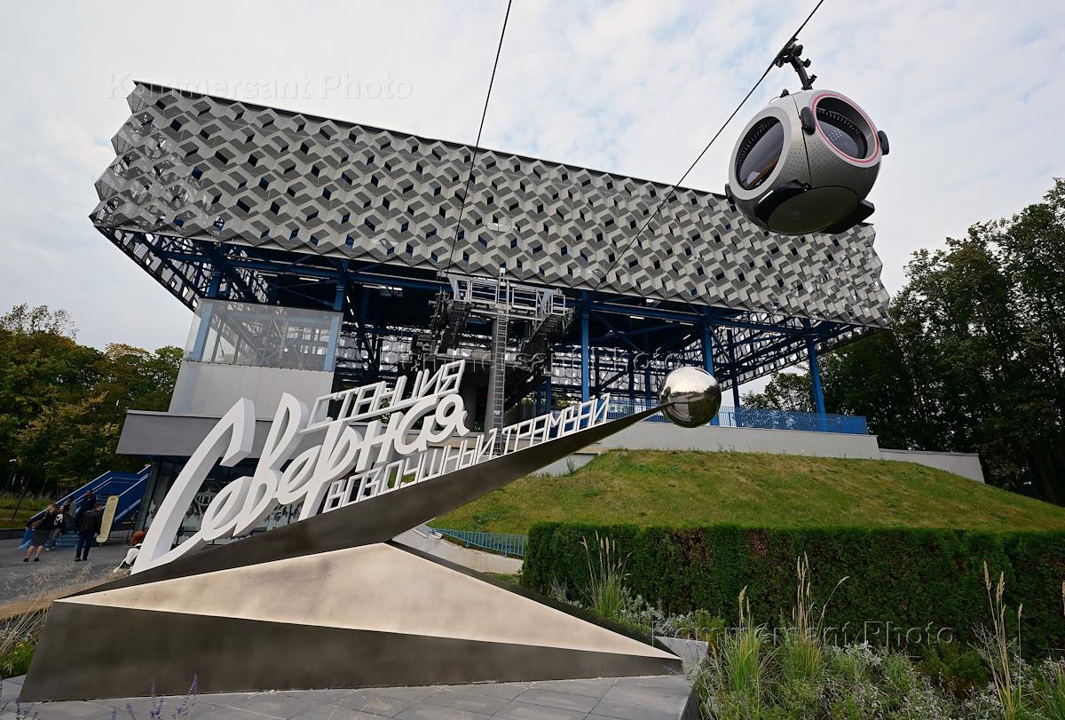 Канатная дорога "Воздушный трамвай" на ВДНХ. Жанровая фотография. Павильон станции "Северная".