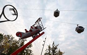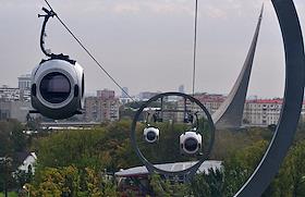 Канатная дорога "Воздушный трамвай" над парком "Орион" на ВДНХ. Жанровая фотография.