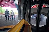 Канатная дорога "Воздушный трамвай" на ВДНХ. Жанровая фотография. Пассажиры перед посадкой в кабину.