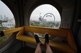 Канатная дорога "Воздушный трамвай" на ВДНХ. Жанровая фотография. Вид из кабины.