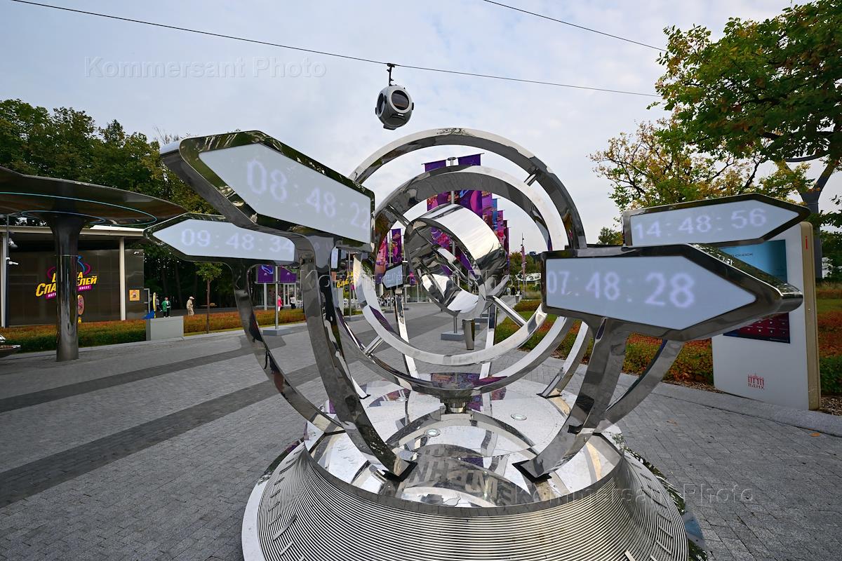 Канатная дорога "Воздушный трамвай" над парком "Орион" на ВДНХ. Жанровая фотография.