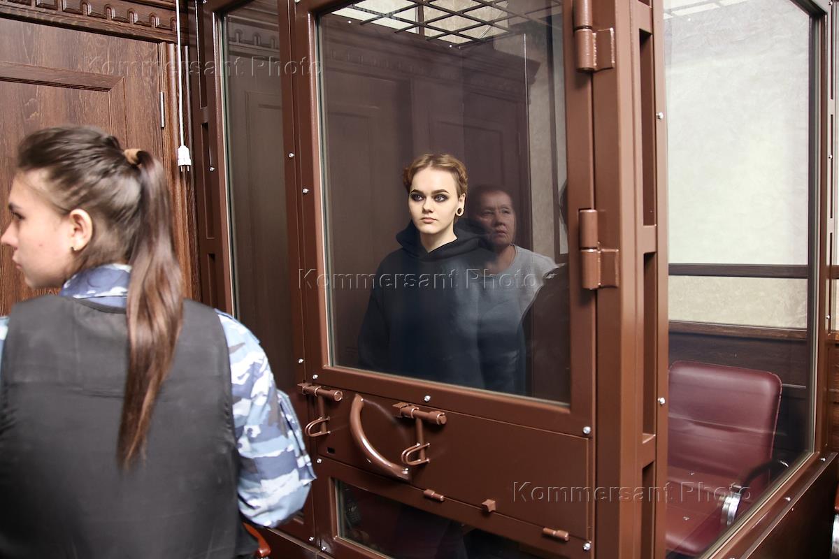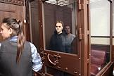 Обвиняемая в подготовке террористического акта в Мариуполе в день завершения референдума о присоединении Донецкой Народной Республики (ДНР) к России Ирина Навальная (справа) во время заседания Южного окружного военного суда.
