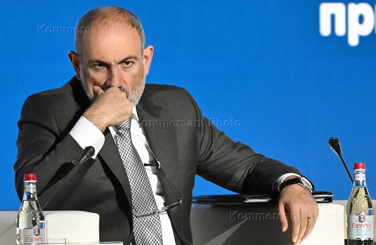 Рабочий визит председателя правительства России Михаила Мишустина в Армению. Евразийский экономический форум 2024. Пленарное заседание "Цифровизация в современных реалиях – императив для обеспечения четырех свобод". Премьер-министр Армении Никол Пашинян во время выступления на пленарном заседании.