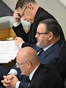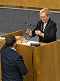 Пленарное заседание Государственной думы (ГД) России. Заместитель руководителя фракции партии "Единая Россия" в ГД России Андрей Исаев (слева) во время заседания.