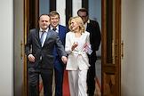 Пленарное заседание Государственной думы (ГД) России. Слева направо: первый заместитель председателя ГД России Александр Жуков, председатель ГД России Вячеслав Володин и руководитель фракции "Единая Россия" в ГД России Владимир Васильев перед началом заседания.