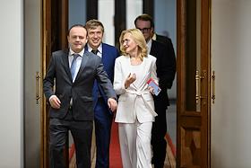 Пленарное заседание Государственной думы (ГД) России. Слева направо: заместитель председателя ГД России Петр Толстой, заместитель председателя правительства России Дмитрий Чернышенко, министр труда и социальной защиты России Антон Котяков и министр здравоохранения России Михаил Мурашко во время заседания.
