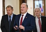 Пленарное заседание Государственной думы (ГД) России. Лидер КПРФ, руководитель фракции КПРФ в ГД России Геннадий Зюганов (в центре) перед началом заседания.