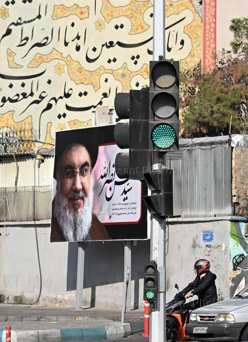Виды Тегерана. Жанровая фотография. Плакат с портретом лидера ливанского шиитского движения "Хезболла" Хасана Насраллы на одной из улиц города.
