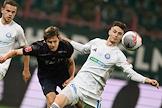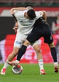 Фонбет - Кубок России по футболу 2024/25. Матч между командами "Локомотив" (Москва) - "Оренбург" (Оренбург) на стадионе "РЖД Арена". Игрок команды "Локомотив" Наир Тикнизян (справа) и игрок команды "Оренбург" Дмитрий Рыбчинский (слева) во время матча.