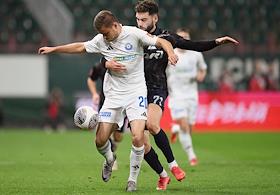 Фонбет - Кубок России по футболу 2024/25. Матч между командами "Локомотив" (Москва) - "Оренбург" (Оренбург) на стадионе "РЖД Арена". Игрок команды "Локомотив" Наир Тикнизян (слева) и игрок команды "Оренбург" Дмитрий Рыбчинский (справа) во время матча.