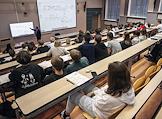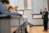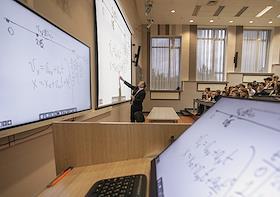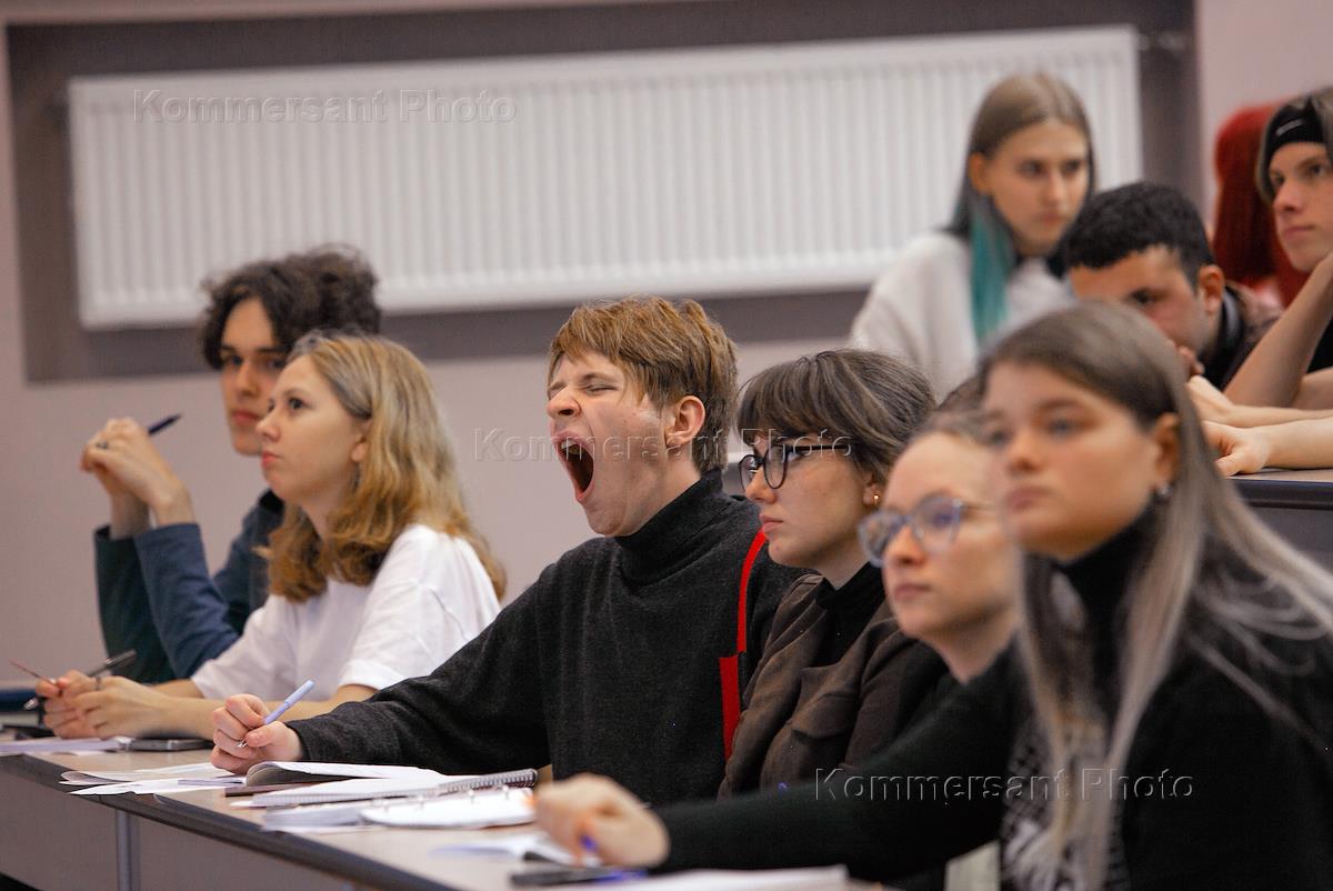 Открытый урок по физике для абитуриентов в Санкт-Петербургском государственном телекоммуникаций (СПбГУТ) имени профессора М.А.Бонч-Бруевича. Преподаватель кафедры физики СПбГУТ, федеральный эксперт ЕГЭ Владимир Федюшин во время урока.
