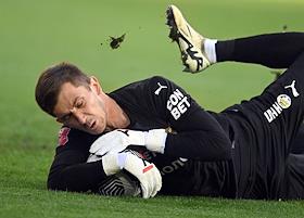 Фонбет - Кубок России по футболу 2024/25. Матч между командами "Химки" (Химки) - "Ростов" (Ростов-на-Дону) на стадионе "Арена Химки". Вратарь команды "Ростов" Рустам Ятимов во время матча.