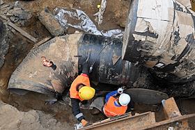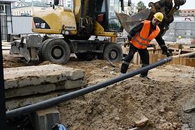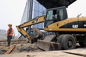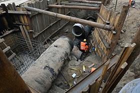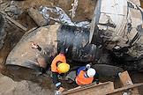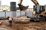 Строительство нового московского городского вокзала "Серп и Молот". Жанровая фотография. Забивание железных свай для укрепления фундамента здания.