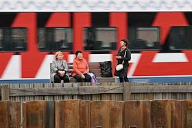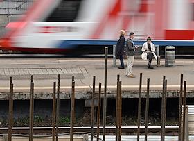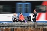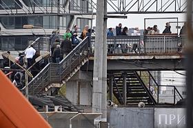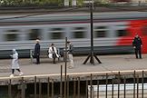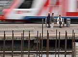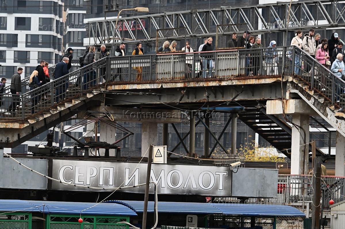 Строительство нового московского городского вокзала "Серп и Молот". Жанровая фотография. Пассажиры на перроне станции.
