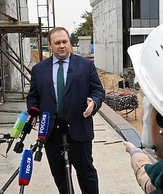 Строительство нового московского городского вокзала "Серп и Молот". Начальник дирекции МЦД Департамента транспорта Москвы Виктор Кальщиков во время пресс-подхода, посвященного развитию транспортной инфраструктуры Москвы.