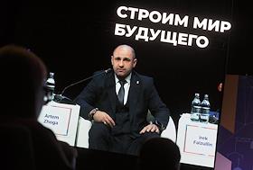 Международный строительный форум и выставка "100+ TechnoBuild" в МВЦ "Екатеринбург-ЭКСПО". Пленарное заседание "Строим мир будущего". Президент Национального объединения строителей (НОСТРОЙ) Антон Глушков во время заседания.