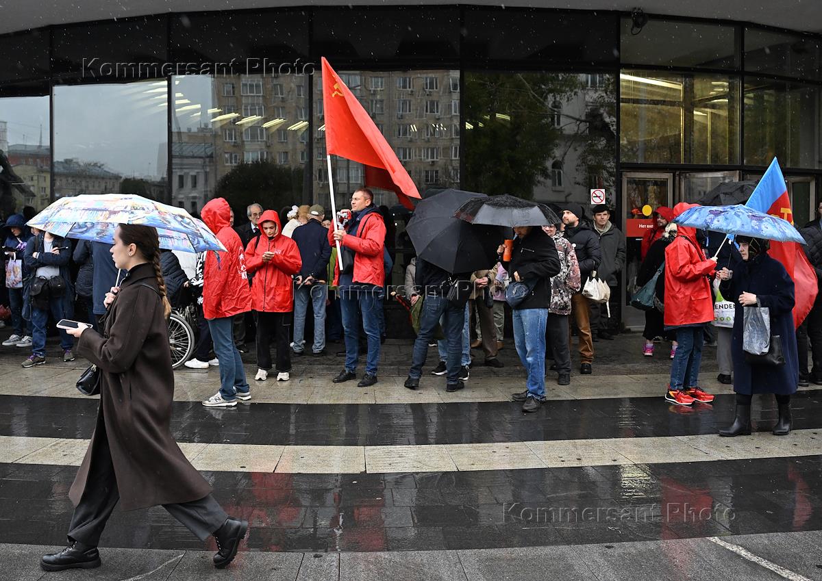 Мероприятия Коммунистической партии России (КПРФ), в 31-ю годовщину событий октября 1993 года в память защитников Дома Советов, у памятника "Героям революции 1905‒1907 годов". Траурное шествие памяти к памятному кресту, воздвигнутому на месте расстрела парламента возле Дома правительства России.