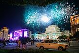Церемония открытия форума по инновациям и технологиям WCIT 2024 DigiTec на площади Республики. Участники во время концерта и светового шоу в рамка церемонии.