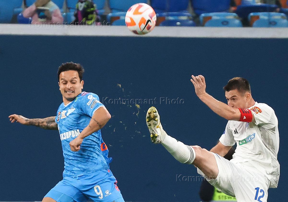 Мир Российская Премьер-Лига (РПЛ) 2024/2025. 11-й тур. Матч между командами "Зенит" (Санкт-Петербург) - "Оренбург" (Оренбург) на стадионе "Газпром Арена". Игрок команды "Оренбург" Саид Сахархизан (справа) и игрок команды"Зенит" Клаудиньо (слева) во время матча.