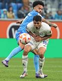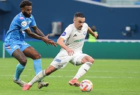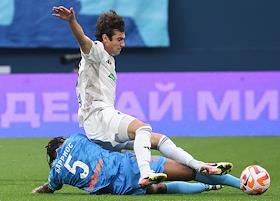 World Russian Premier League (RPL) 2024/2025. 11th round. Match between the teams "Zenit" (St. Petersburg) - "Orenburg" (Orenburg) at the Gazprom Arena stadium. Orenburg team player Said Sakharkhizan (right) and Zenit team player Claudinho (left) during the match.