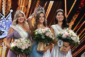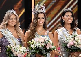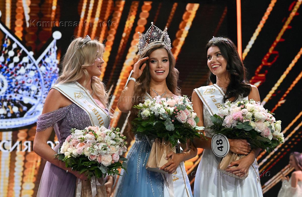 Финал национального конкурса "Мисс Россия" в концертном зале "Барвиха Luxury Village". Слева направо: 2-я "Вице-мисс Россия-2024" Ульяна Евдокимова (Санкт-Петербург), "Мисс Россия 2024" Валентина Алексеева (Республика Чувашия) и 1-я "Вице-мисс Россия 2024" Ирина Миронова (Тольятти) во время церемонии награждения.