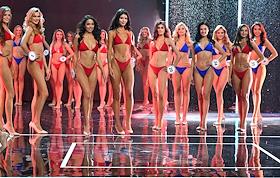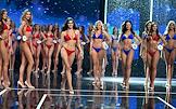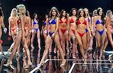 Финал национального конкурса "Мисс Россия" в концертном зале "Барвиха Luxury Village". Участницы конкурса во время дефиле в купальниках.